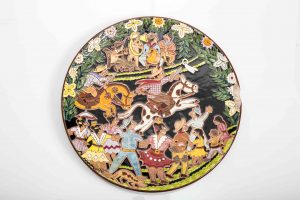 Para el mes de octubre presentamos un plato realizado en loza esmaltada y decorado con la técnica de cuerda seca, perteneciente a una pequeña serie que Julián de la Herrería dedicó a Paraguay y que constituye el antecedente de otra colección más extensa titulada Del folklore paraguayo.